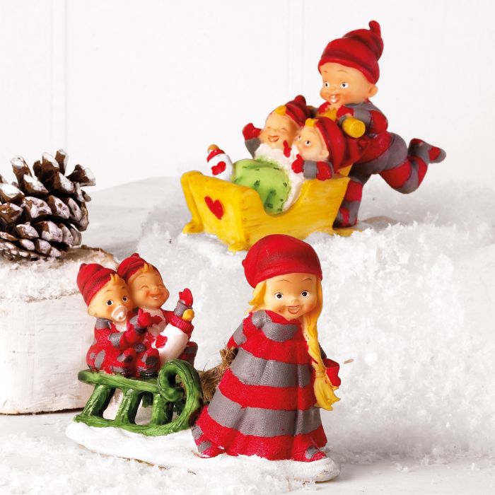 Baby elf with infant. The baby elf with infant is available in two variants either with baby elf boy or baby elf girl. Made of polyresin. It measures approx. 8 cm in height.