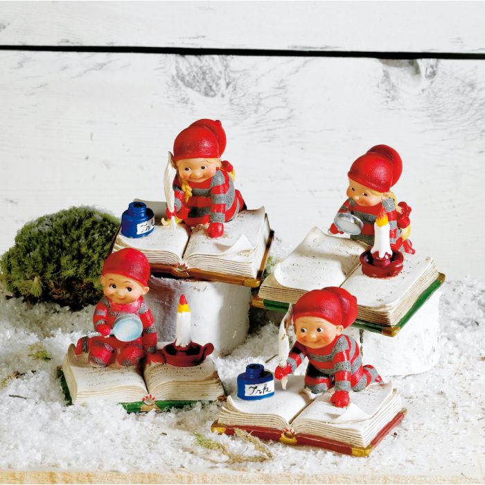 Baby elf with book. It measures 6 cm. Available in 4 variants.