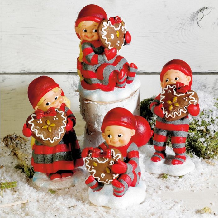 Baby elf with gingerbread heart. It measures 10 cm. Available in 4 variants.