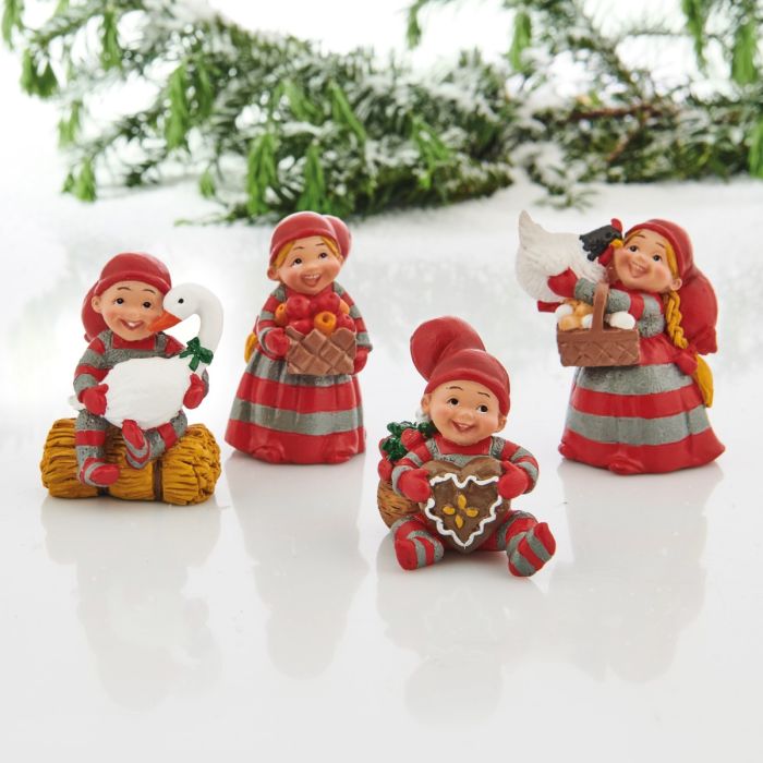 The baby elves with their happy faces and gray-striped elf costumes are busy in the countryside, where there is always something to do. Here they help with everyday chores and spread Christmas spirit wherever they go. Each figure is a baby elves in a rural idyll, made of polyresin with fine details and warm, Christmassy colors. The figures fit perfectly with the baby elves' farmhouse and the other figures in the series, so you can create a nice elf landscape full of coziness and tradition. The baby elves are designed by Susanna Hartmann and come from Danish Pobra, known for their nostalgic Christmas universe with the beloved baby elves in red and gray. An atmospheric Christmas figure that brings rural tranquility, elf joy and classic Danish Christmas into the home.