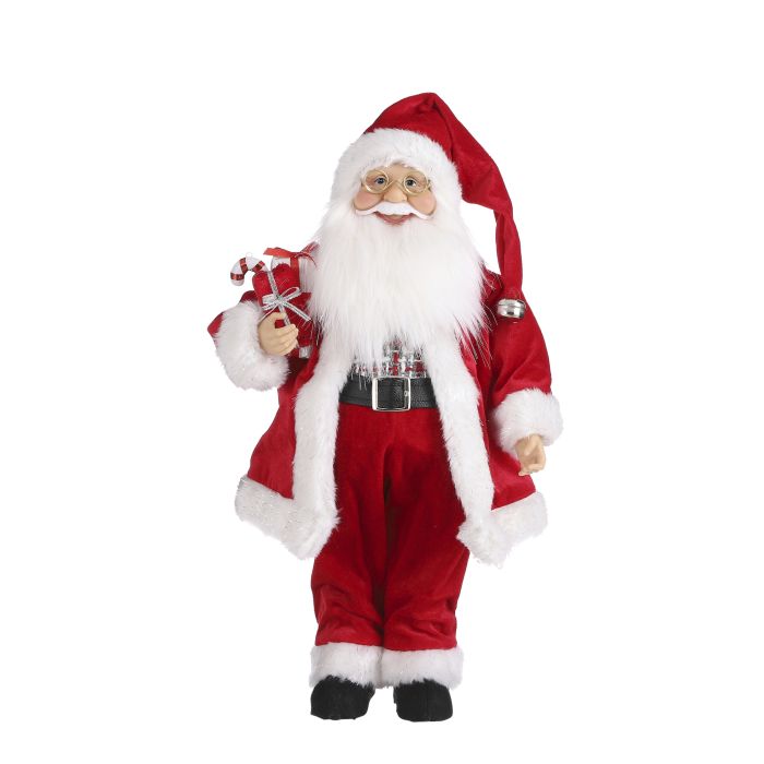 Santa Claus. Old-fashioned Santa Claus with iconic Santa Claus clothes and hat with bells. Santa Claus also has a large white beard and wears glasses. Santa Claus measures 45 cm in height.