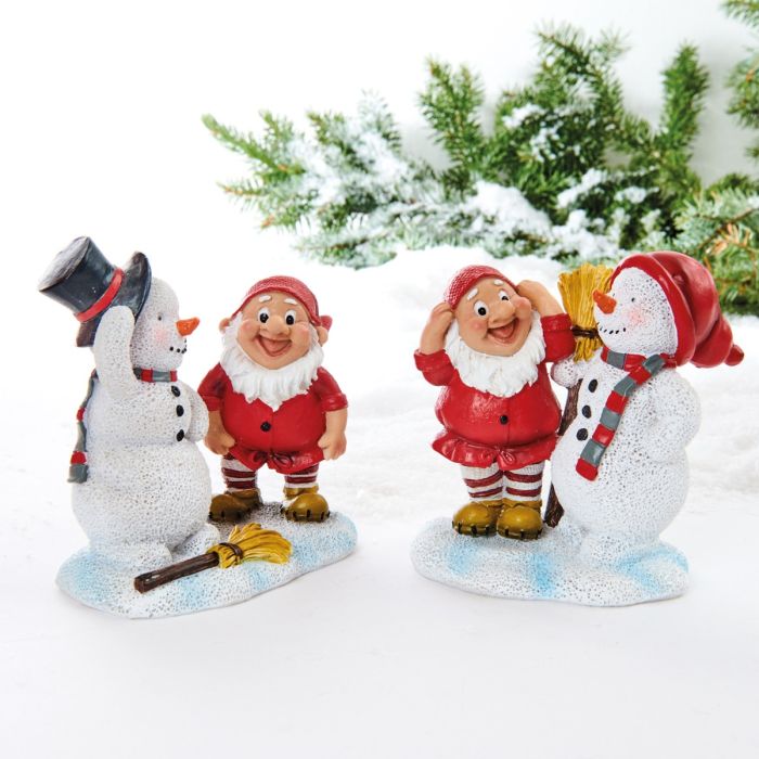 The forest elf has been out into the snow all day building a beautiful snowman. Available in 2 variants: a forest elf with a snowman wearing a hat or a forest elf with a snowman wearing a beanie.