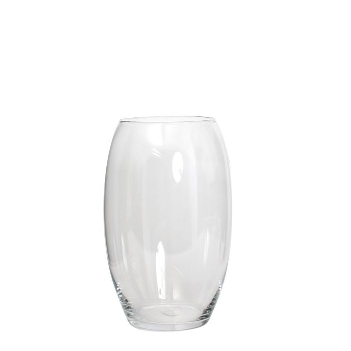 Vince glass vase. Traditionally shaped glass vase with space for many flowers or a large bouquet. The vase measures 35 cm in height and has a diameter of 22 cm at its widest point. Made of clear glass.