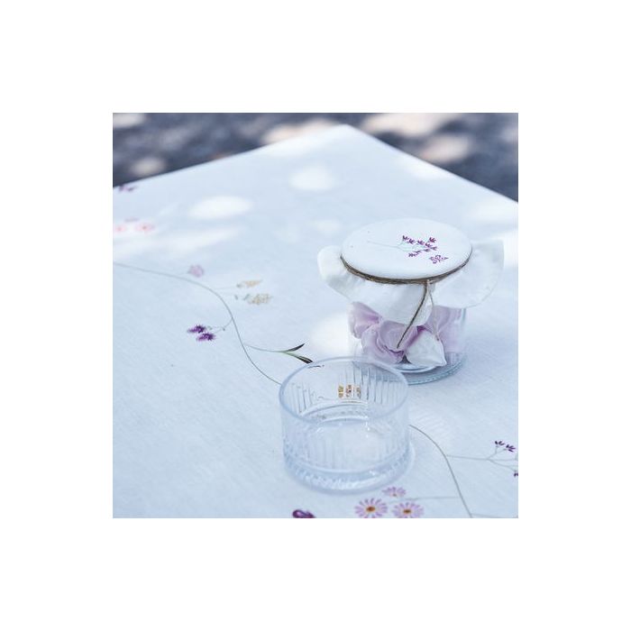This summery tablecloth from Speedtsberg gives a fresh and inviting look to both the garden table and the cozy summer table settings. The tablecloth is made of a soft linen and cotton blend, which drapes naturally and creates a light, relaxed atmosphere. The center is adorned with an elegant flower vine with small butterflies, which adds a lively and romantic look without appearing dominant. It works equally well for everyday meals on the terrace as for garden parties, coffee breaks or when the table just needs a touch of summer atmosphere. The material makes the tablecloth comfortable to work with and easy to place, and the overall look combines functionality and aesthetics in a natural and decorative way.