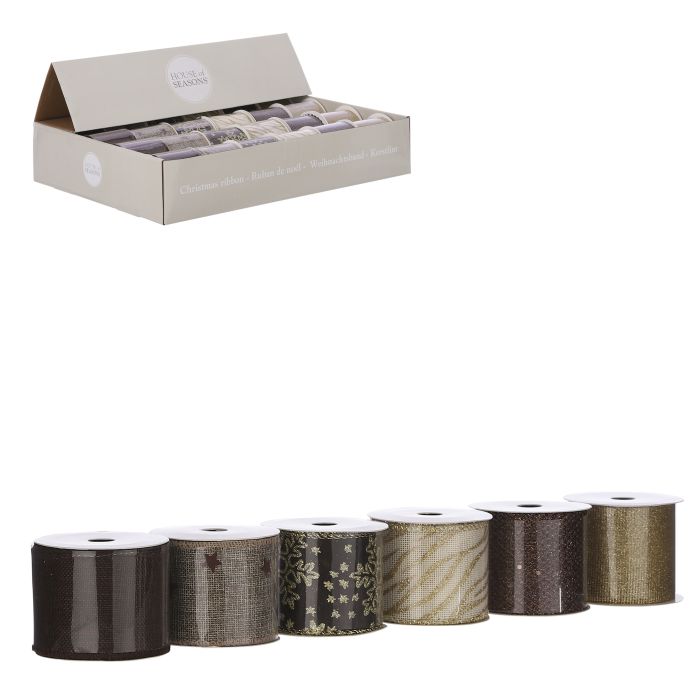 Decorative ribbon with beautiful brownish shades and metal wire on the edges. The decorative ribbon is suitable for forming beautiful bows for the Advent wreath. The decorative ribbon measures 6 cm in width and 270 cm in length.