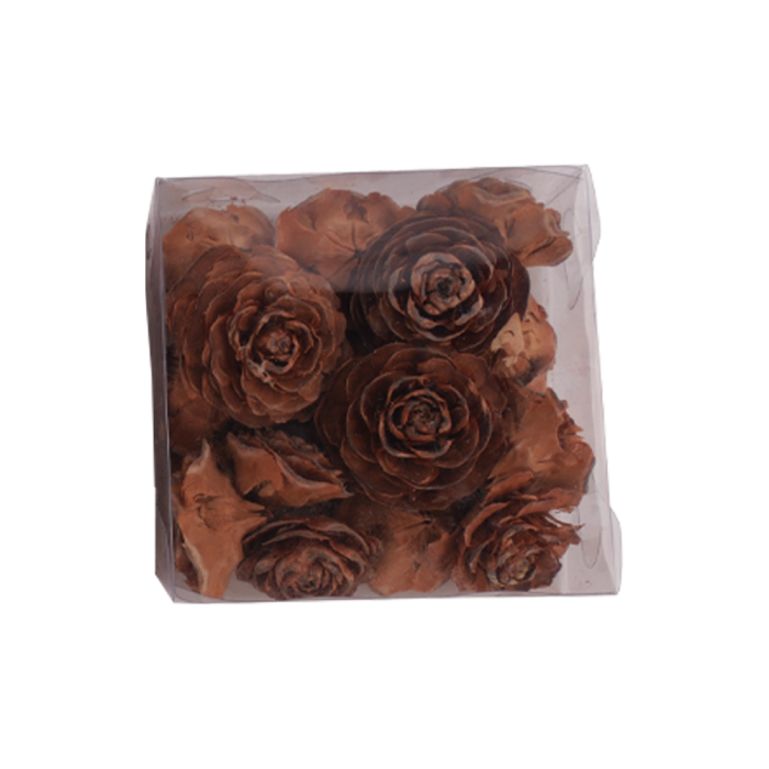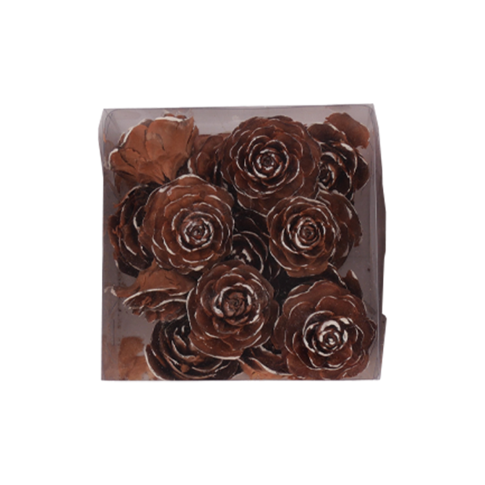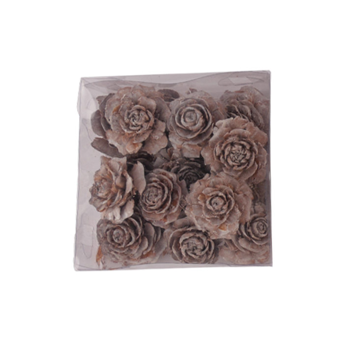 Cedar cone roses with wire in three different shades. Very decorative with their rose-like appearance. Choose between a lot of "frost", a little "snow" or natural brown.