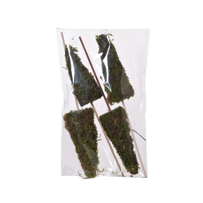 Cone-shaped trees in moss with a stick for decoration in, for example, wreaths, oasis, etc.
