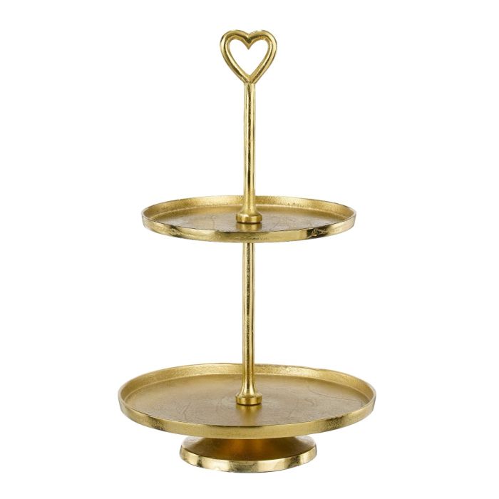 This beautiful tiered platter from Mica Decorations combines classic design with a touch of romance. The platter is made of recycled aluminum with a warm gold finish and has two tiers that provide space for cakes, snacks or small delicacies. At the top, the centerpiece is adorned with a decorative heart, which makes it easy to lift. The platter will be a festive and eye-catching detail, for example, on the Christmas table, at the wedding reception, birthday or christening.