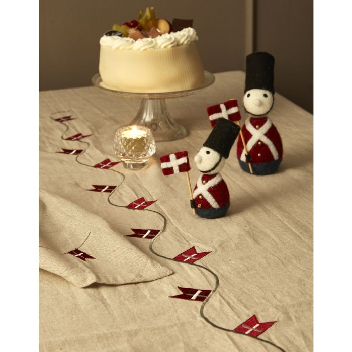 Birthday tablecloth in linen color with flag garland all the way through. The tablecloth has a coated surface and is from Speedtsberg.