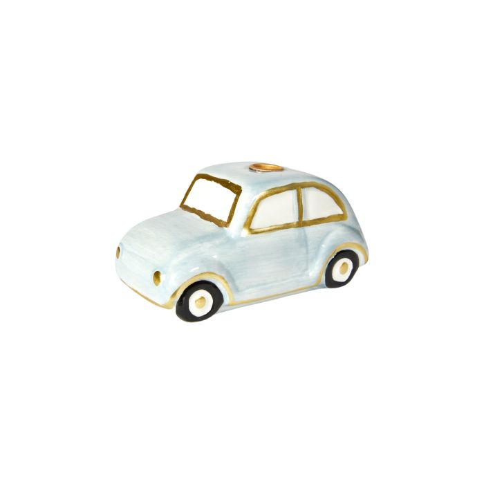 Small pastel-colored light blue car with gold-colored details from Speedtsberg. The candle holder decorates both everyday and party. Can be used for example for a baby's christening or a child's birthday. The holder is for candlelight .