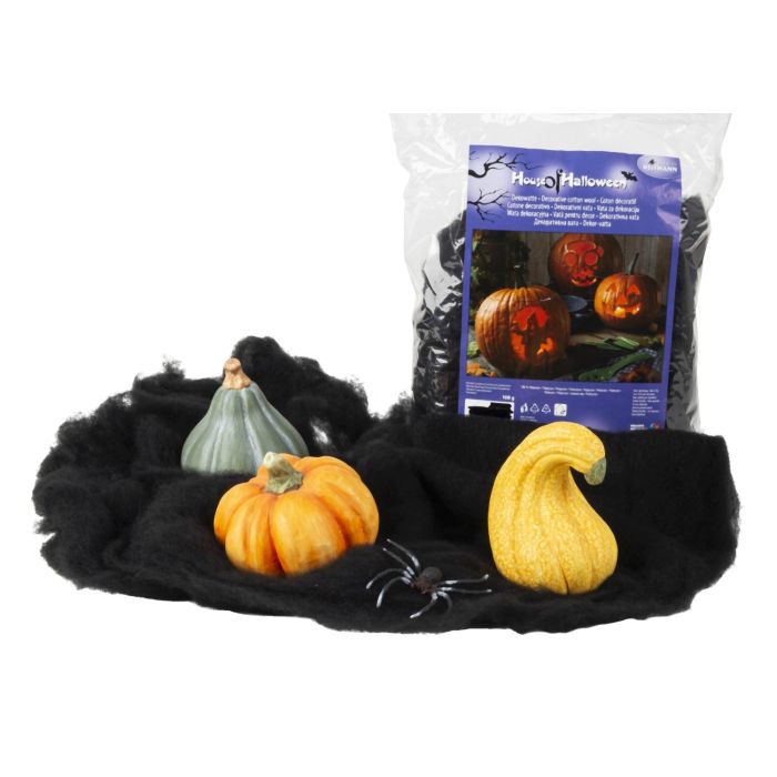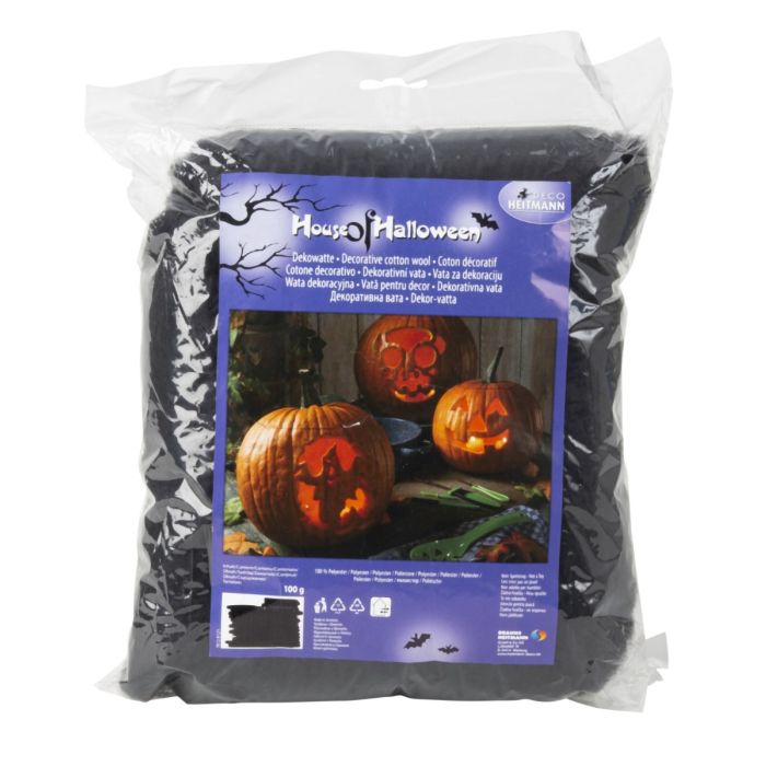 Black decorative batting that can be used as a base or background in Halloween decorations. The dark, light batting structure creates a spooky and dramatic atmosphere, for example with pumpkins, skeletons and spiders. Use it on the windowsill, on a dish, in a lantern or as the base of a decoration. It is easy to shape and adapt as needed - a versatile base for your spooky setups.