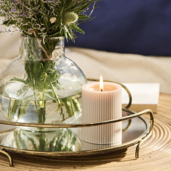Brass-colored tray with two handles and mirrored bottom from Ib Laursen in an exclusive design. The tray is ideal as a decorative dish for candles, where the light is reflected beautifully.