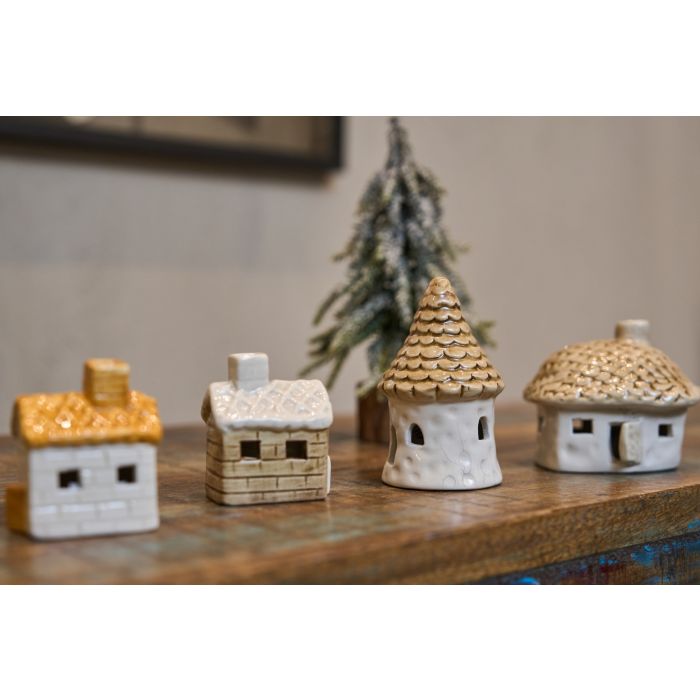 Decorative round ceramic house from Speedtsberg, hand-painted in beautiful brown shades and off-white. The house has a cozy look that creates warmth and charm in the interior. Place an LED tealight inside and experience how the light shines softly through the windows and the open door. With its compact size, the house fits well on a shelf, on a windowsill or on a small table. Use it alone or combine it with other ceramic houses in the series to create a nice little village.