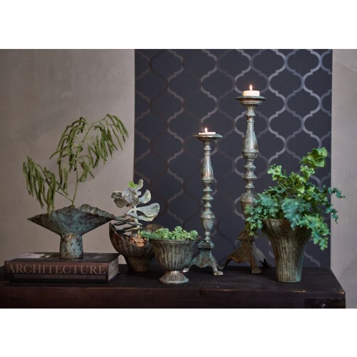Decorative metal centerpiece from Speedtsberg with a beautiful, organic shape. The antique green color adds warmth and charm to the interior design. Use the centerpiece for, for example, dried flowers, fruit or seasonal decorations. Combine it with the matching candlesticks and vases in the same series for a harmonious expression.