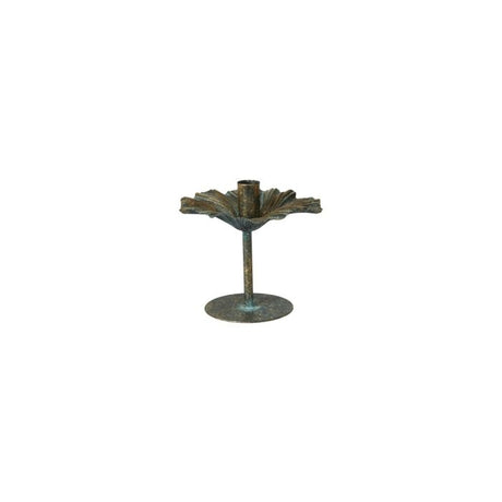 Candlestick with leaves 15 cm high antique green