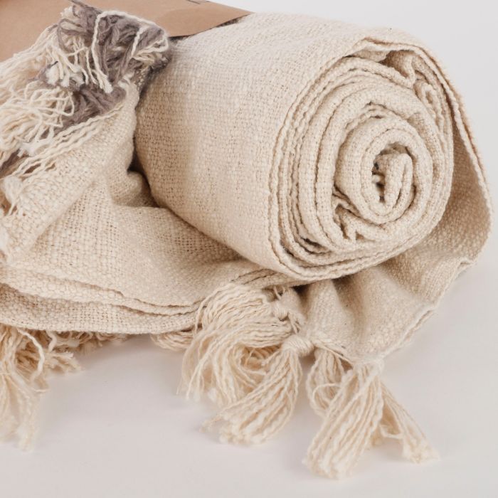 Fiorentino summer plaid with grey stripes and fringes along the ends. The plaid is made of 100% recycled cotton. A lovely summer plaid in good quality from Mica Decorations.