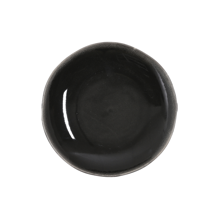 Tabo black stoneware lunch plate. Beautiful, black glazed stoneware series. All the products have unique, organic shapes. The series consists of bowls, plates and mugs. The lunch plate measures 20.5 cm in diameter. Made of stoneware clay.