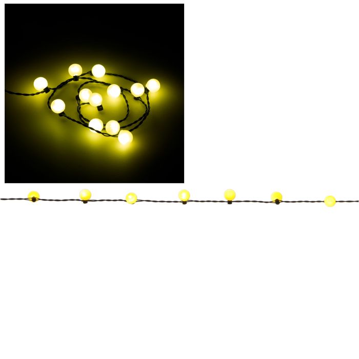 Light chain with 12 warm, white lights. The light chain uses 2 x 1.5 V AA batteries. The batteries are not included. It can also be used with our 3 volt adapter. Measurements: L: 95 cm