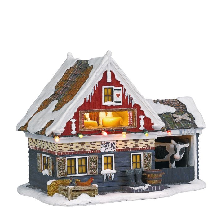 The farm has lights, and the cheeses move back and forth in the attic.