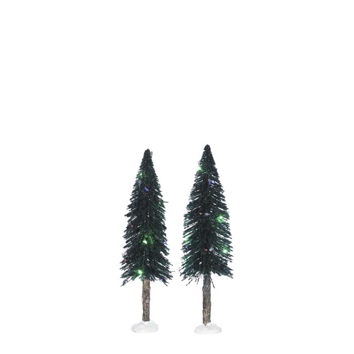 This is a set consisting of 2 bristle trees with lights in various colors. Uses AA batteries (batteries not included). Measures: L: 5 cm x H: 19 cm x D: 5 cm.
