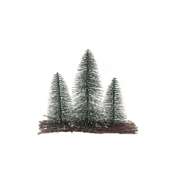 Three conifers with white "snowdrifts" on a base of bundles of thin twigs. Good as a separation in the Christmas landscape or as a decoration with figures, for example on the windowsill.