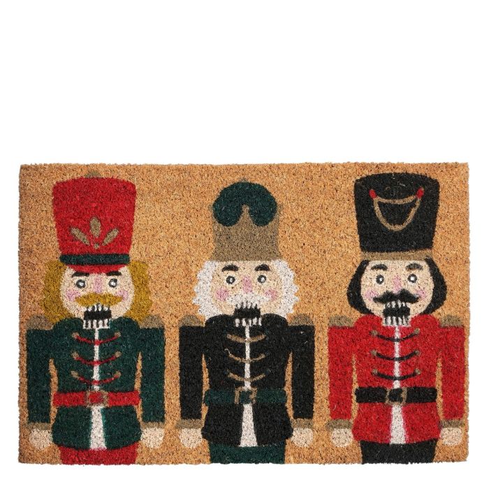Door mat featuring soldiers from The Nutcracker as the motif. This mat is of good quality from House of Seasons, offering a cozy way to welcome the holiday season.