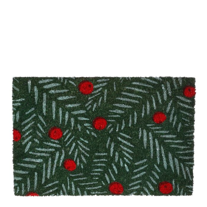 Door mat with yew branches and red berries. A good quality door mat with a beautiful motif suitable for winter months.