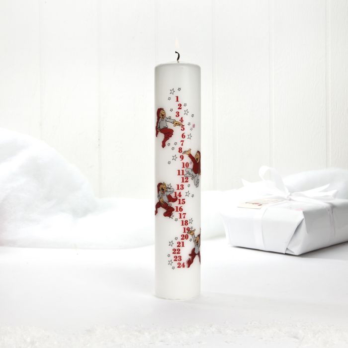 Bramming calendar candle. Bramming calendar candle with numbers and elf motif. Available in white. It measures 25 cm in height and 5 cm in diameter.