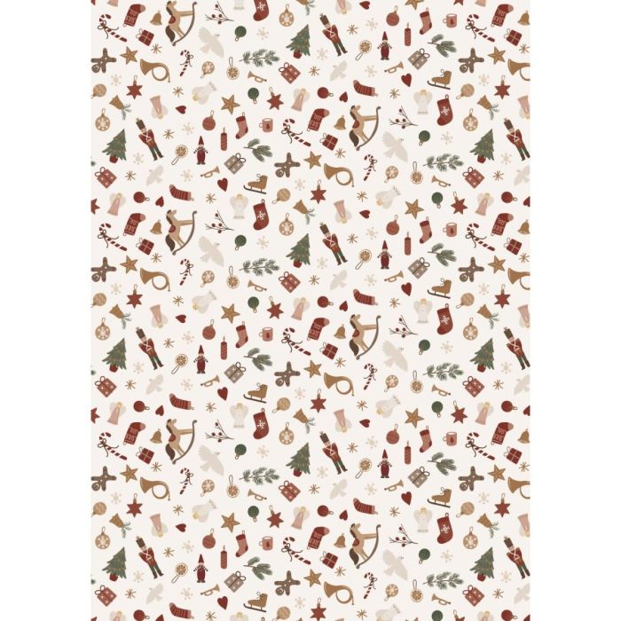 Make your Christmas gift wrapping both beautiful and sustainable with this fine Christmas gift wrapping paper in recycled paper from Ib Laursen. The paper is decorated with nostalgic Christmas icons such as Christmas trees, stars, candy canes and packages in classic Christmas colors, creating a warm and cozy atmosphere under the Christmas tree. The strong recycled paper is both durable and environmentally friendly. It is perfect for wrapping Christmas gifts for family and friends. Use the paper together with natural twine, silk ribbon or our fine velour ribbon.