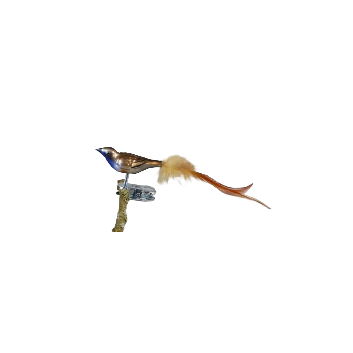 The tail consists of real feathers in brown tones, and the long, slender shape gives the bird an elegant and almost floating expression when placed on a branch or in a decoration. With a length of 13 cm including the light feather tail, the bluethroat is a smaller bird that is particularly suitable for finer details in the Christmas tree, wreaths or small winter arrangements.