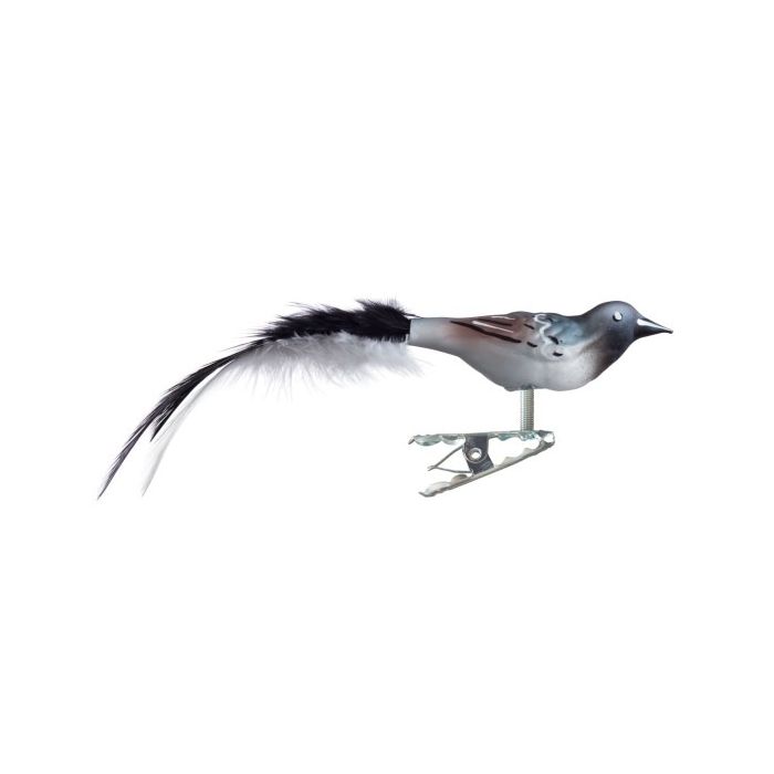 The tail feathers consist of real feathers in black and white, and the long, slightly curved tail gives the bird a lively and moving expression when it sits on a branch or in a decoration. With a length of 13 cm including the tail, this wagtail is a smaller bird that is ideal for Christmas trees, table decorations, wreaths and small winter arrangements.