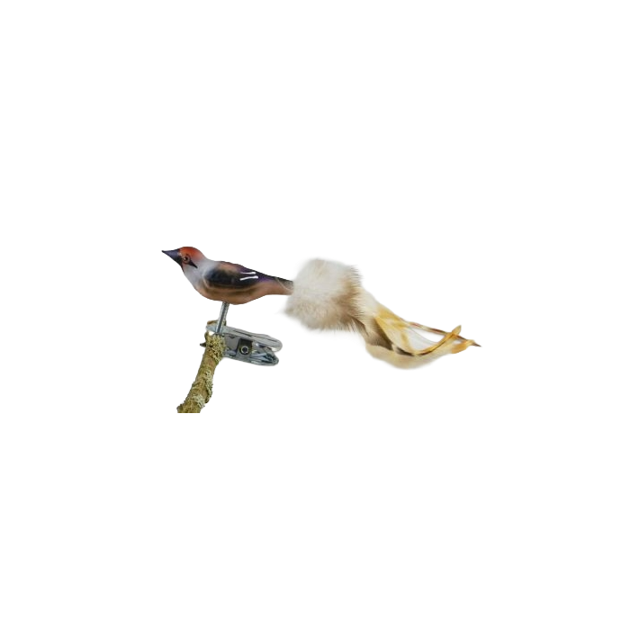 The long tail is made of real light brown feathers, which move easily when the bird is placed on a branch or in a decoration. The soft feather tail gives the figure's silhouette a poetic and airy expression that fits beautifully in both modern and traditional Christmas decorations.