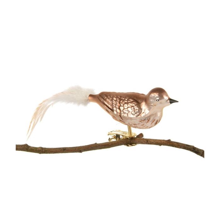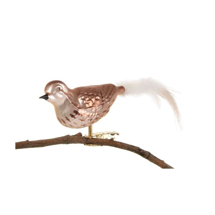 The tail consists of real beige and brown-toned feathers, which add a light and organic movement to the figure. With a total length of 18 cm, including the tail, this song thrush is larger than many of the small birds in the series and therefore functions both as a central eye-catcher and as a beautiful link between branches and decorations.