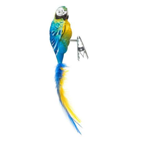 Blue and gold colored parrot with clip