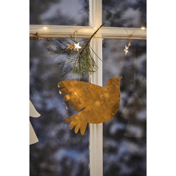 Christmas decorations with elegance are here with the Gloria bird in brass from Ib Laursen. The decorative bird is made of metal with a warm brass color that reflects the light so beautifully. The slightly larger size makes it ideal as an eye-catcher on the Christmas tree, while it is also beautiful as a smaller detail in the window or hanging on branches in a vase.