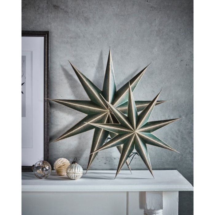 This elegant, dark green star from House Doctor is decorated with beautiful champagne-colored details that give an exclusive and atmospheric expression. Hang the star in the window, where the light makes the pattern sparkle, or let it decorate beautifully on the wall or hanging from the ceiling. It is suitable for a light source, which makes the golden shades stand out even more. The star is also available in a larger size.