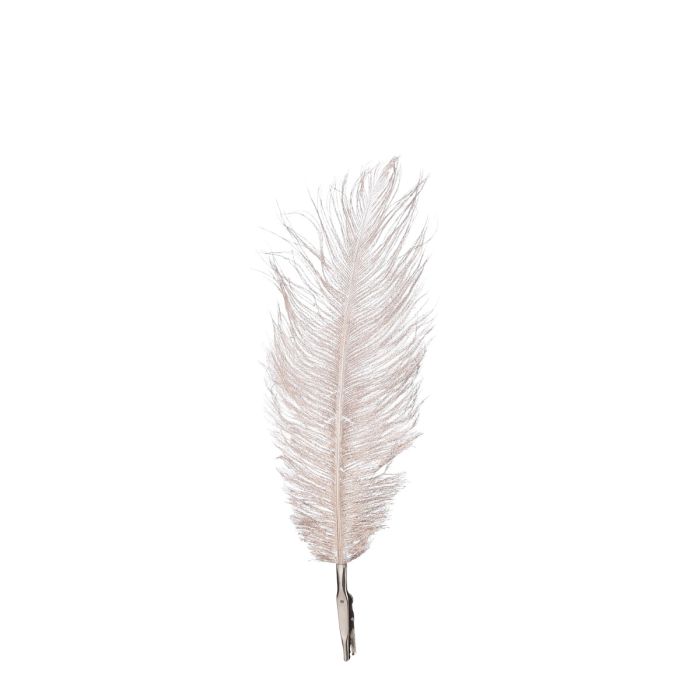 Champagne coloured, wide feathers with a practical clip. For example, it can be attached to spruce branches or Christmas tree. The package contains 6 pieces. Available in several colours.