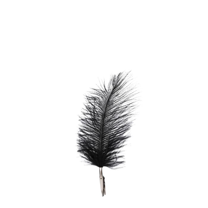 Black, wide feathers with a practical clip. For example, it can be attached to spruce branches or Christmas tree. The package contains 6 pieces. Available in several colours.