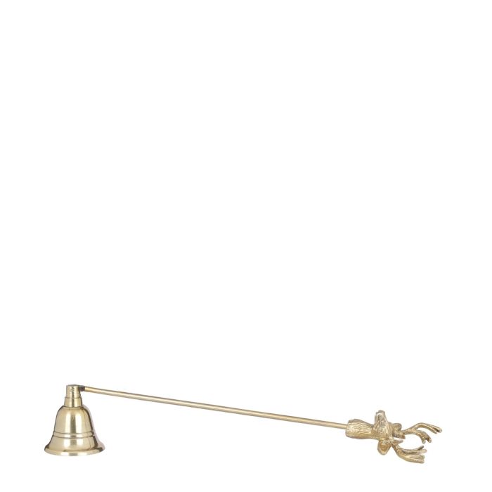 Gold-colored candle extinguisher with a deer face and antlers at the end. Decorative and practical at the same time.