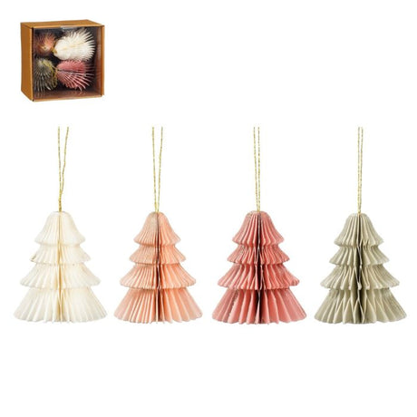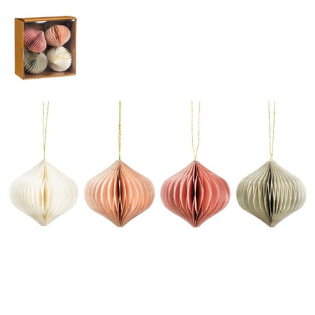 The selection ranges from classic paper ornaments in folded paper to more decorative versions with gold-colored edges and pastel colors in muted tones.
