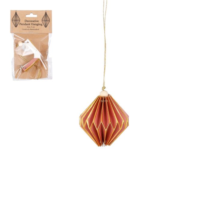 A decorative, handmade white bulb ornament with golden edges made of paper. Hang it, for example, on branches, Christmas trees and windows. Available in several shapes and colours.