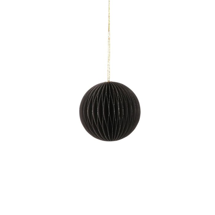 Black paper Christmas ball. The Christmas ball is made from recycled paper. It has a hanging string and a magnetic closure, so it can easily be assembled. Available in several shapes and colours.