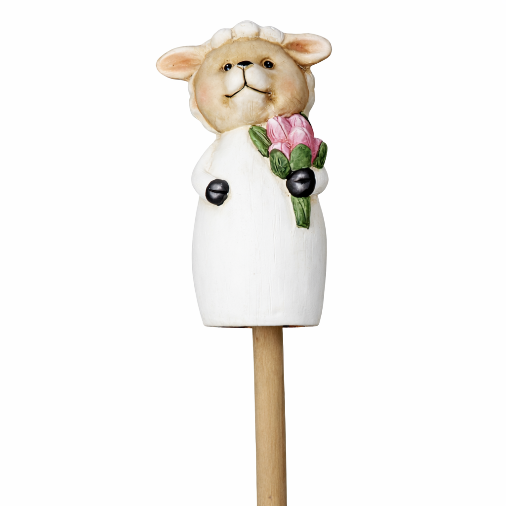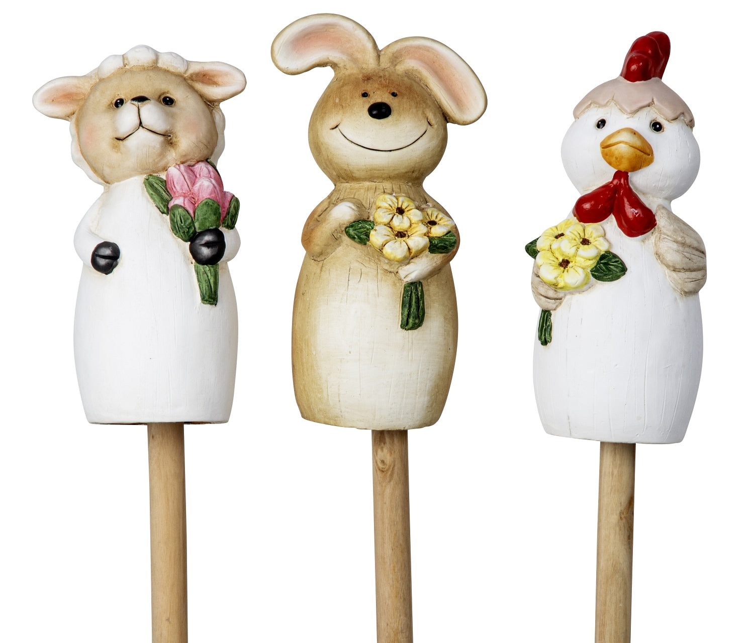 The figures are made of ceramic and mounted on a wooden stick, so they can easily be placed in pots with spring flowers, in beds or in planters. The fine details and the small flowers in the paws emphasize the spring theme and make them an obvious choice as Easter decorations outdoors. Whether you choose the lamb, the hare or the hen, you will get an atmospheric figure that creates coziness and seasonal joy.