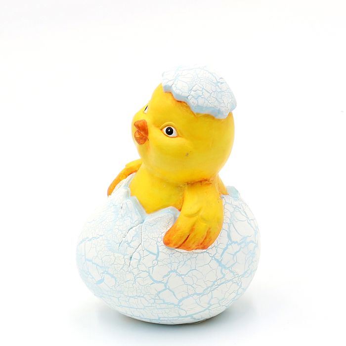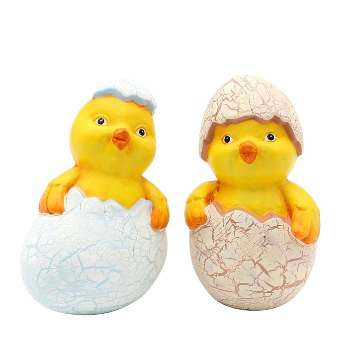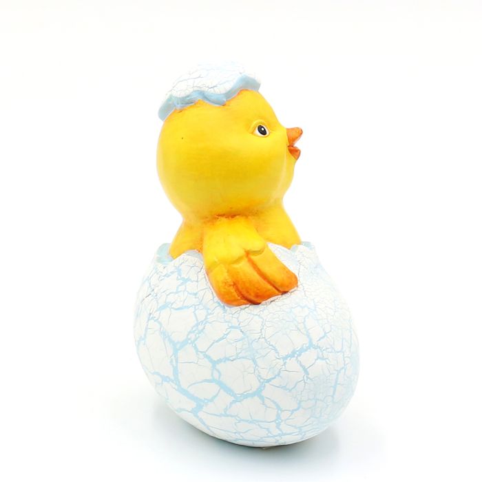 The chicken is suitable as a decoration on the Easter table, on the windowsill or as part of an overall Easter decoration, where it can be combined with branches, flowers and other spring elements. The cracked eggshell adds depth and structure to the expression and supports the story of new life and spring. The figure works both alone and together with other Easter figures, depending on the desired expression.