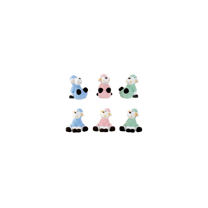 Pastel colored Easter lamb. Available in 6 variants: sitting Easter lambs with their legs in the air or with their legs down. They all have in common a beautiful pastel colored "fur". It measures 15 cm in height and 12 cm in width.