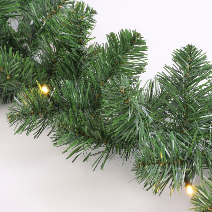 Artificial Norton spruce garland with soft needles and 20 warm white LED lights. Decorate, for example, outside around the doors or windows or inside around the stair railing. The Norton spruce garlands can also be decorated with, for example, Christmas balls or pine cones.