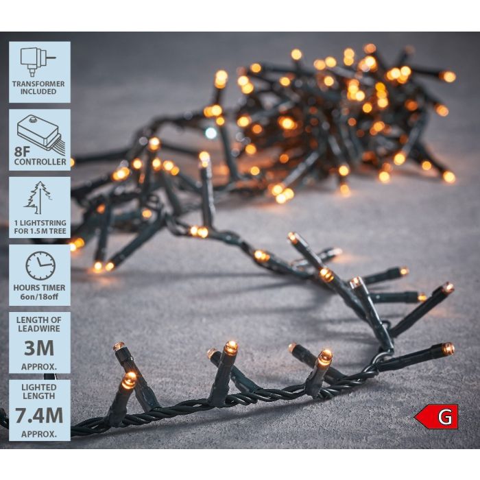 Snake Light light chain from Luca Lighting with 370 warm white LED lights distributed on a 7.4 meter long wire. The light chain provides a warm light that creates a cozy atmosphere both indoors and outdoors. With the built-in timer function, you can easily set the light chain to be on for 6 hours and automatically turn off for 18 hours. You can also choose between 8 different light functions, so the light can be varied from constant glow to flashing and wavy effects depending on the occasion. The Snake Light design provides evenly distributed light, making the chain perfect for wrapping around hedges, trees, balconies or along the facade of the house. The warm white color is suitable for any occasion, from Christmas lighting to parties. With the quality from Luca Lighting, you get a durable and reliable light chain that can be used year after year.