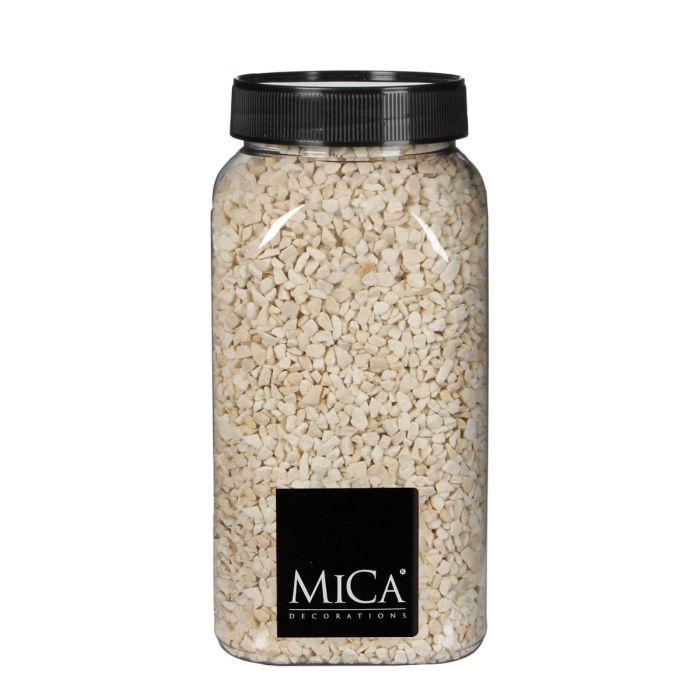 Granulatsten cremefarvede. Gode til dekoration i julelandskabet eller i bunden af vaser, glasbowler eller på lysfade.