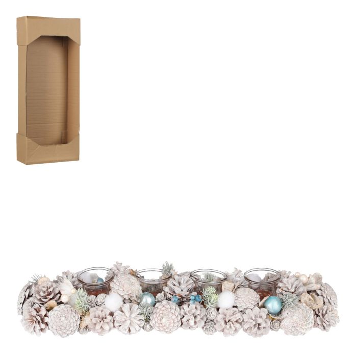 Oblong Advent wreath with white cones and blue decorations