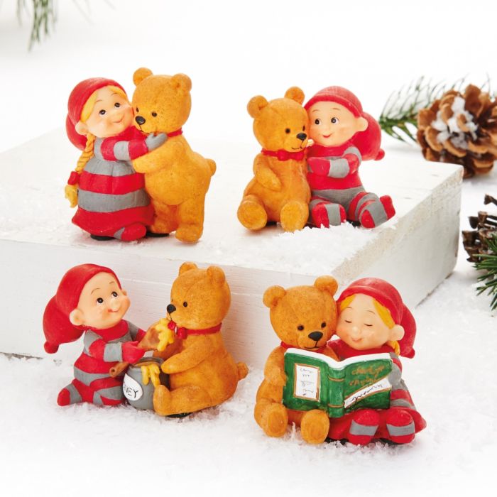 Baby elf with teddy bear. It measures 5 cm. Available in 4 variants.
